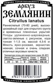 Раннеспелый (70-80 дней), высокоурожайный сорт для открытого грунта и временных пленочных укрытий. Плоды удлиненно-шаровидные, светло-зеленые с рисунком, кора тонкая 1-1,5 см, массой 4,5-6 кг. Мякоть ярко - розовая, зернистая, нежная, сочная и очень сладкая, отличных вкусовых качеств.