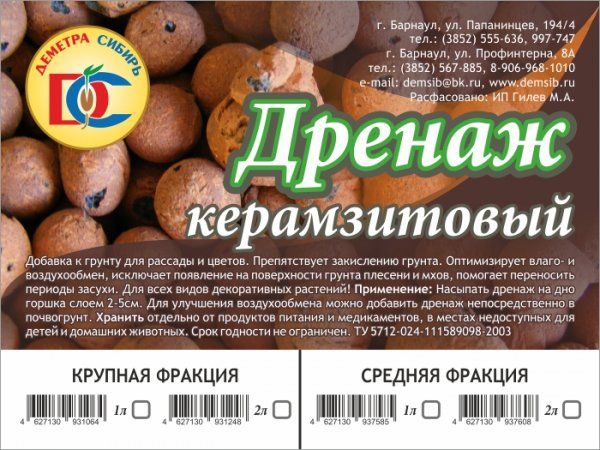 Добавка к грунту для рассады и цветов. Препятствует закислению грунта. Оптимизирует влаго- и воздухообмен, исключает появление на поверхности грунта плесени и мхов, помогает переносить периоды засухи. Для всех видов декоративных растений! Применение: Насыпать дренаж на дно горшка слоем 2-5см. Для улучшения воздухообмена можно добавить дренаж непосредственно в почвогрунт. Хранить отдельно от продуктов питания и медикаментов, в местах недоступных для детей и домашних животных. Срок хранения не ограничен.