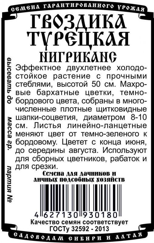 Эффектное двухлетнее холодостойкое растение с прочными стеблями, высотой 50 см. Махровые бархатные цветки, темно-бордового цвета, собраны в многочисленные плотные щитковидные шапки-соцветия, диаметром 8-10 см. Листья линейно-ланцетные меняют цвет от темно-зеленого к бордовому. Цветет с конца июня, до середины августа. Используют для сборных цветников, рабаток и для срезки.