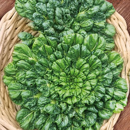 Необычная разновидность китайской капусты. Растение образует красивую розовидную розетку из темно-зеленых с белыми прожилками глянцевых листьев. Вкус мягкий, слабоострый, пикантный, с горчичными нотками. Татсой очень богата витаминами С и А, минералами, антиоксидантами, при этом она низкокалорийная и практически не содержит жиров. Отлично подойдет для овощных салатов, гарниров, рагу, можно добавлять в суп, маринад, использовать в приготовлении сэндвичей. Сорт совершенно неприхотлив, хорошо растет даже на бедных почвах.