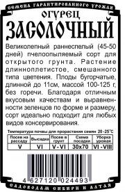 Великолепный раннеспелый (45-50 дней) пчелоопыляемый сорт для открытого грунта. Растение длинноплетистое, смешанного типа цветения. Зеленец бугорчатый, длинной до 11см, массой 100-125г, без горечи. Благодаря отличным вкусовым качествам и выравненности зеленцов по форме и размеру, сорт идеально подходит для любых видов консервирования.