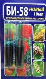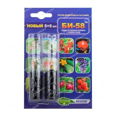 Би 58 2х5 мл – Эффективный инсектицид, который предназначен для уничтожения многих вредителей сельскохозяйственных культур. Би 58 новый 5 мл – это концентрат эмульсии, который одновременно обладает контактным и системным действием против вредителей. Максимально эффективен для уничтожения тли, медяницы, клещей, гусеницы. Также Би 58 новый успешно применяется против медведки. Действующее вещество препарата – диметоат.