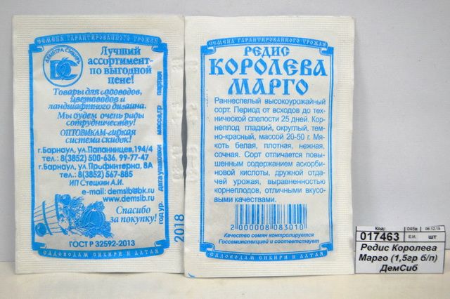 Раннеспелый высокоурожайный сорт. Период от всходов до технической спелости 25 дней. Корнеплод гладкий, округлый, темно-красный, массой 20-50 г. Мякоть белая, плотная, нежная, сочная. Сорт отличается повышенным содержанием аскорбиновой кислоты, дружной отдачей урожая, выравненностью корнеплодов, отличными вкусовыми качествами.