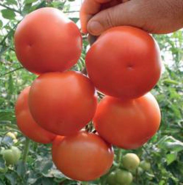 Новый ранний высокоурожайный гибрид с дружной отдачей урожая. Срок созревания: 56–60 дней от высадки. Идеально подходит для ранних и ультраранних посадок, в том числе под временными укрытиями. Плоды превосходного качества, ровной округлой формы, плотные, не подвержены растрескиванию. Масса плода: 220–250 г; цвет: тёмно-красный. Высокий процент плодов имеет носик, плоды обладают хорошей лёжкостью. Гибрид обладает высокой степенью устойчивости к вирусу бронзовости томата, мучнистой росе, вертициллезному и фузариозному увяданиям, а также корневой нематоде.