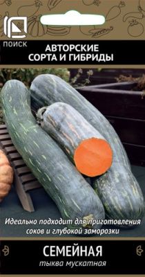 Очень маленькая семенная камера, сплошная мякоть. Вид мускатная. Позднеспелый сорт, период от всходов до первого сбора плодов 130-140 дней. Растение мощное, длинноплетистое. Плоды крупные, цилиндрической формы, длиной до 1 м, темно-зеленые с восковым налетом, массой до 35 кг. Семенная камера маленькая, находящаяся в вершиной части плода. Мякоть оранжевая, хрустящая, плотная. Идеально подходит для приготовления сока, первых блюд и для глубокой заморозки.
